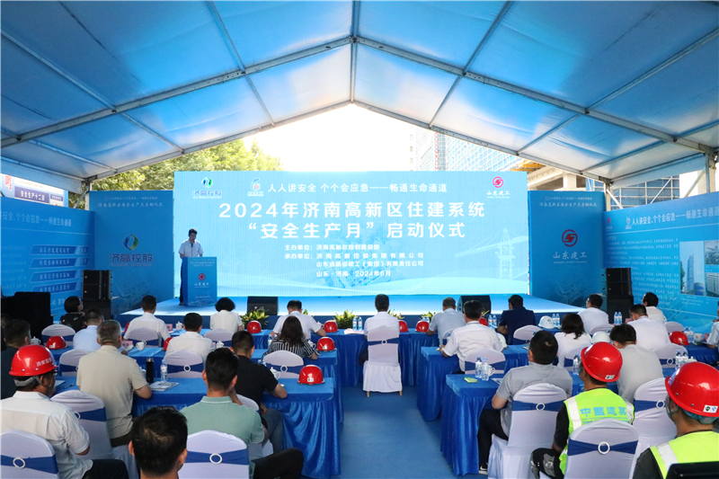 儀式上,集團(tuán)王彥宏董事長(zhǎng)、濟(jì)南高新智慧谷投資置業(yè)有限公司董事長(zhǎng)兼總經(jīng)理常艷麗分別致辭;高新區(qū)規(guī)劃建設(shè)部副部長(zhǎng)劉嘯鵬宣讀《2024年濟(jì)南高新區(qū)住建系統(tǒng)“安全生產(chǎn)月”活動(dòng)實(shí)施方案》;與會(huì)全員觀(guān)看“安全生產(chǎn)月”主題宣傳片《暢通生命通道》,濟(jì)南前沿科創(chuàng)基地項(xiàng)目應(yīng)急救援演練視頻和《塔機(jī)自動(dòng)駕駛系統(tǒng)》應(yīng)用宣傳片。高新區(qū)黨工委委員、管委會(huì)副主任李濤講話(huà)。最后,與會(huì)領(lǐng)導(dǎo)共同啟動(dòng)2024年濟(jì)南高新區(qū)住建系統(tǒng)“安全生產(chǎn)月”活動(dòng)。